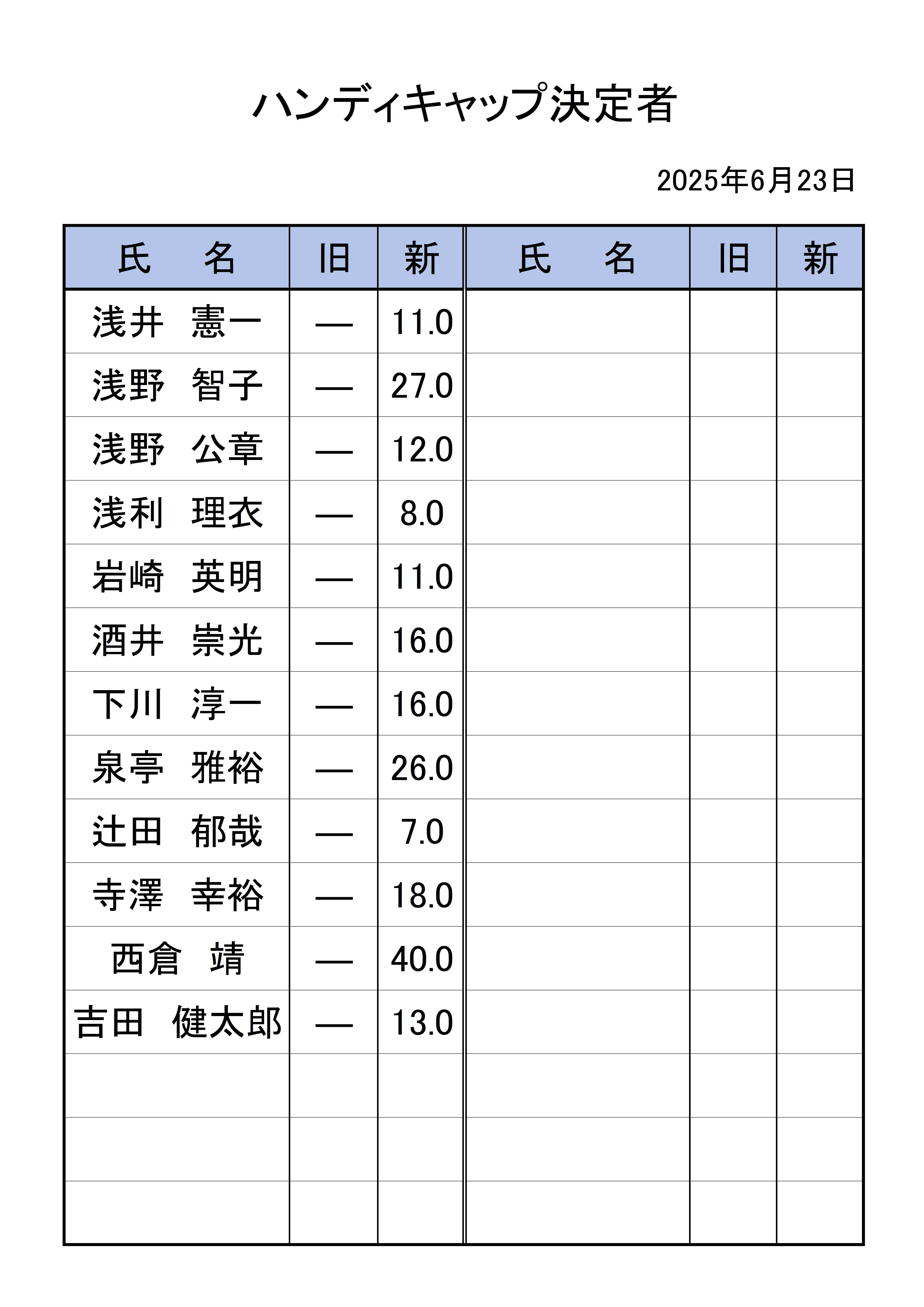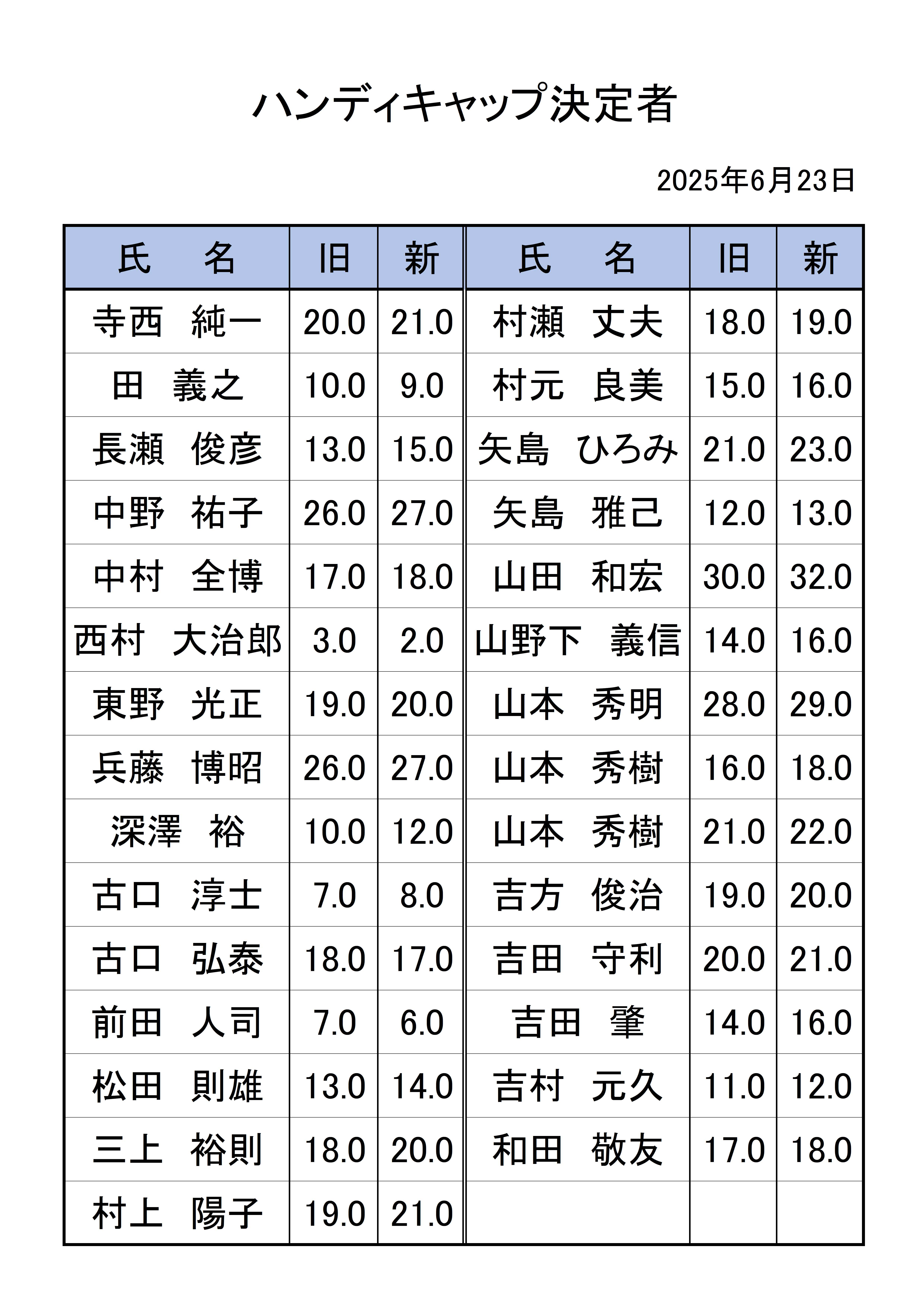 専門委員会 ハンディキャップ委員会】6月21日ハンディキャップ決定者 2025.06.23 Post Share Hatena Line RSS feedly Pin it note この記事のタイトルとURLをコピーする Post Share Hatena Line RSS feedly Pin it note