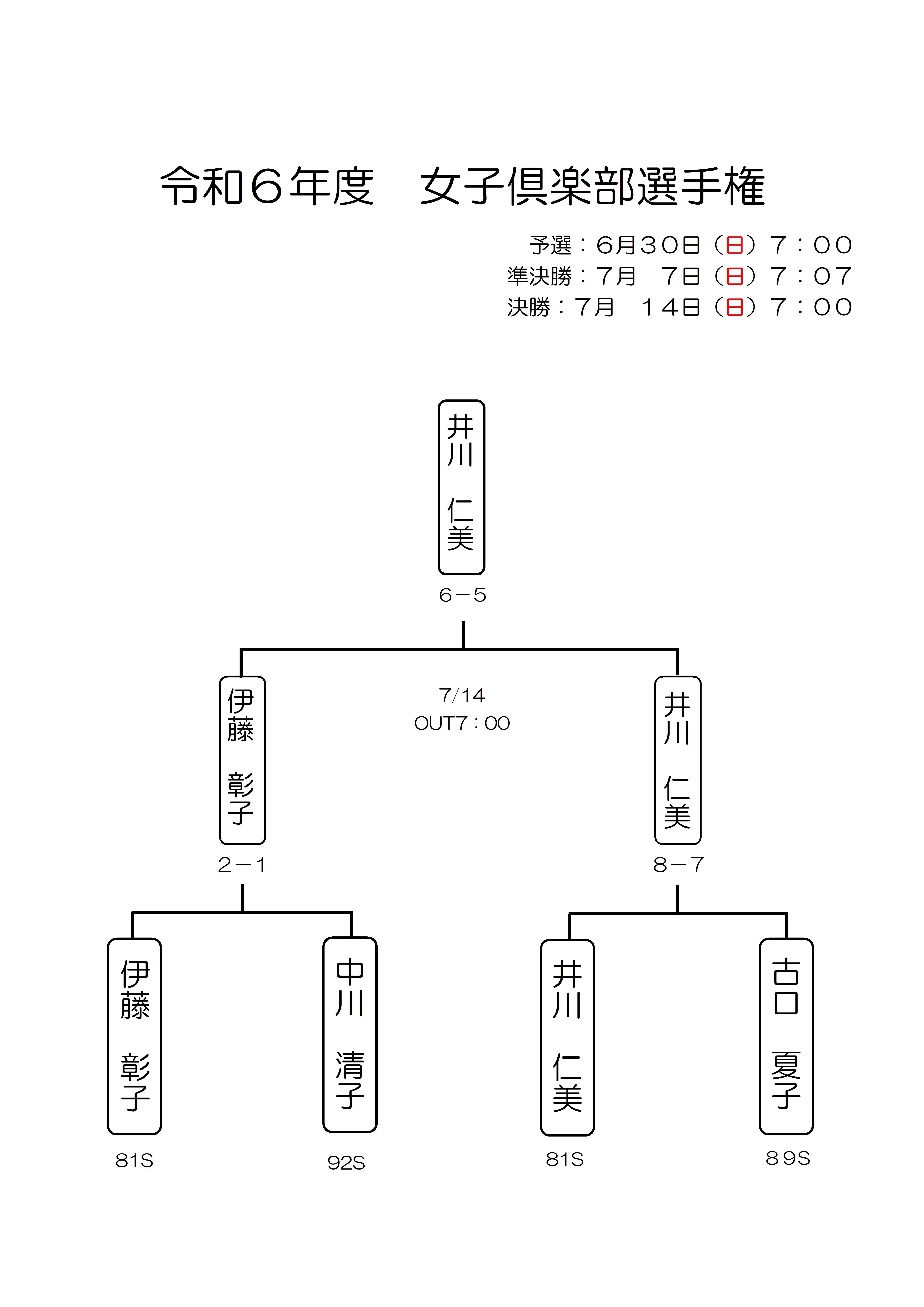 メンバー向け 女子俱楽部選手権決勝競技結果 2024.07.14 Post Share Hatena Line RSS feedly Pin it note この記事のタイトルとURLをコピーする Post Share Hatena Line RSS feedly Pin it note